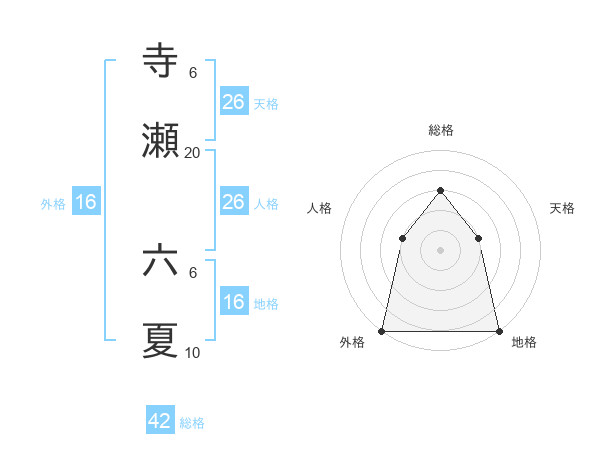 寺瀬 六夏さんの総格は42画の3点!