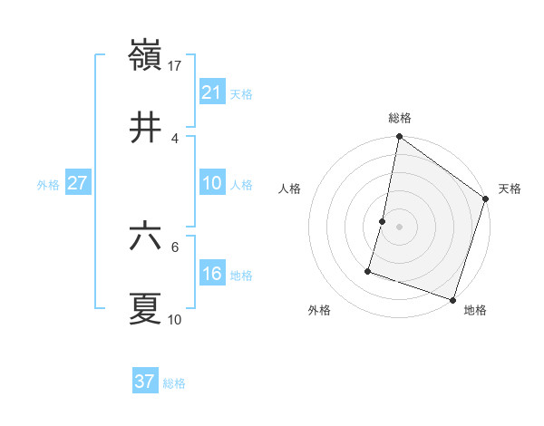 嶺井 六夏さんの総格は37画の5点!