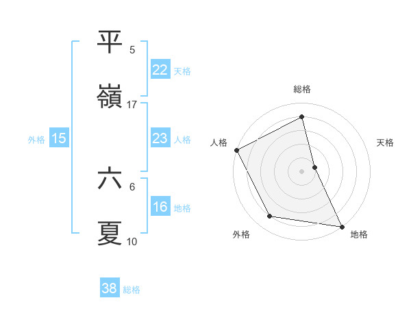 平嶺 六夏さんの総格は38画の4点!