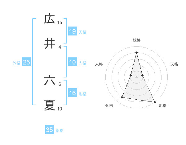 広井 六夏さんの総格は35画の4点!