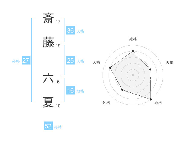 斎藤 六夏さんを姓名の画数から五運を鑑定