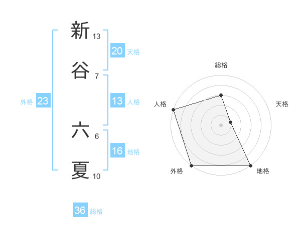 新谷 六夏さんを姓名の画数から五運を鑑定