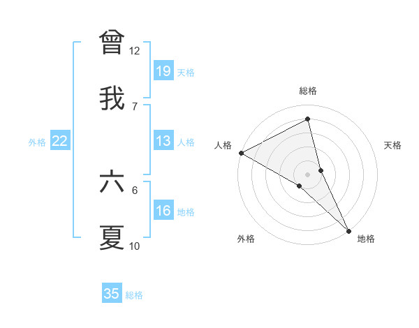 曾我 六夏さんを姓名の画数から五運を鑑定