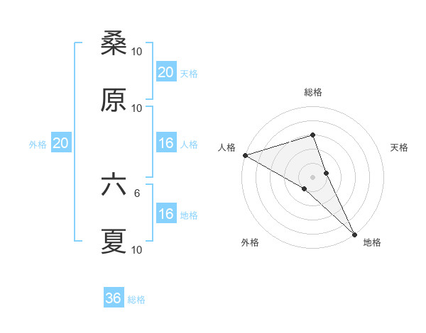 桑原 六夏さんの地格は16画の5点!