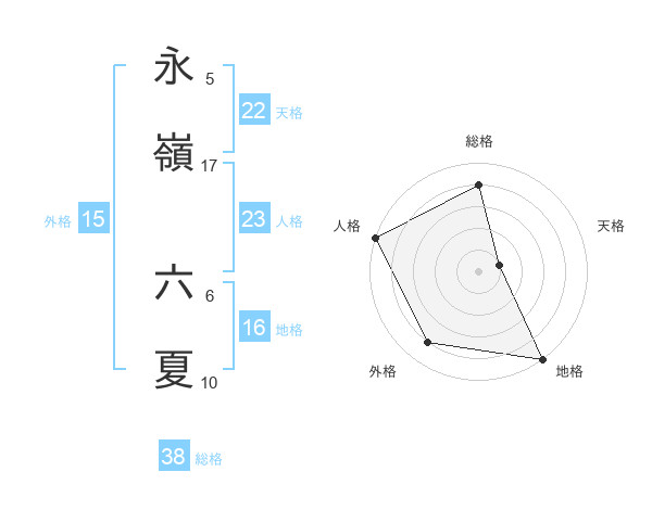 永嶺 六夏さんを姓名の画数から五運を鑑定