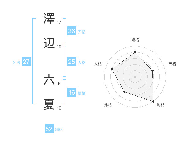 澤辺 六夏さんを姓名の画数から五運を鑑定