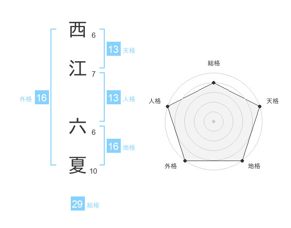 西江 六夏さんの天格は13画の5点!