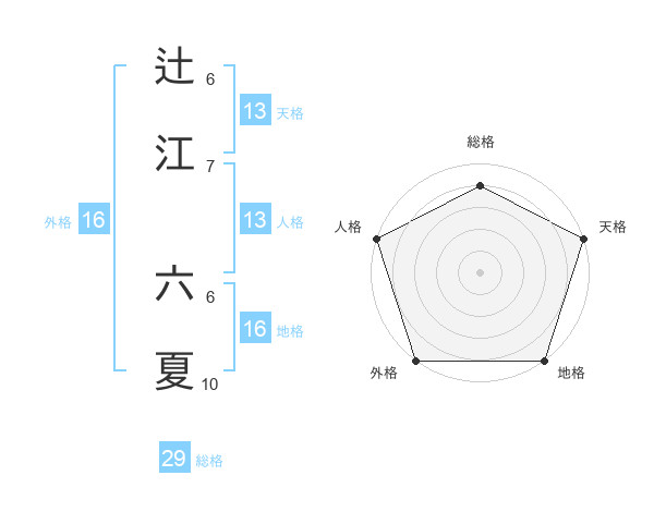 辻江 六夏さんを姓名の画数から五運を鑑定