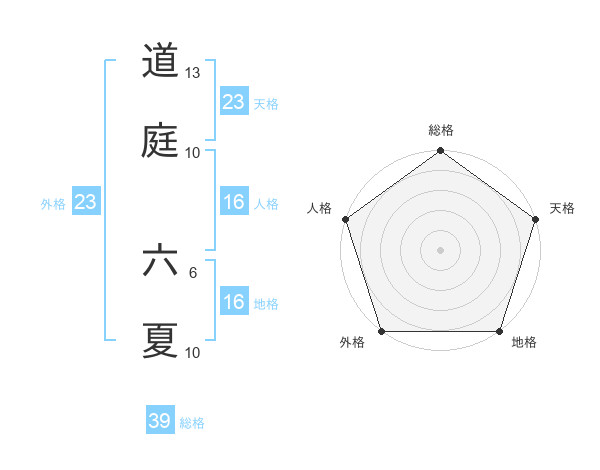 道庭 六夏さんの外格は23画の5点!