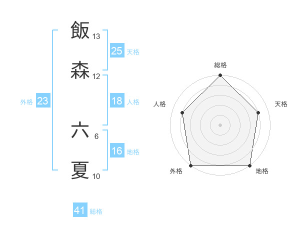 飯森 六夏さんの外格は23画の5点!