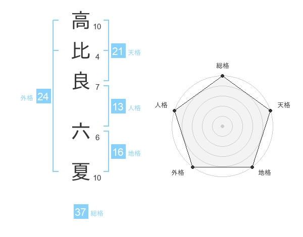 高比良 六夏さんを姓名の画数から五運を鑑定