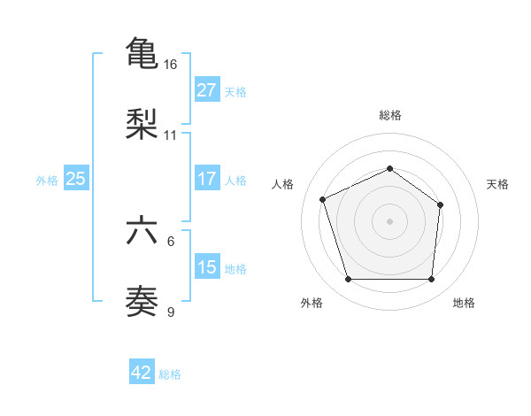 亀梨 六奏さんを姓名の画数から五運を鑑定