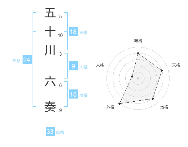 五十川 六奏さんを姓名の画数から五運を鑑定