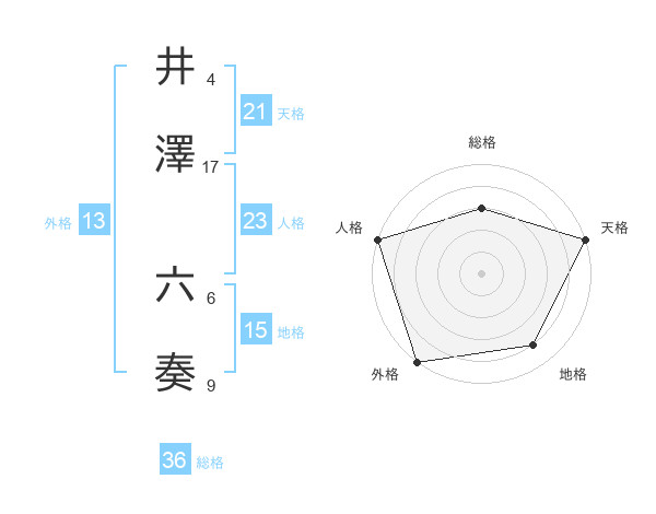 井澤 六奏さんを姓名の画数から五運を鑑定