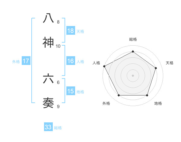八神 六奏さんの総格は33画の4点!