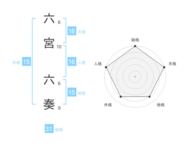 六宮 六奏さんの総格は31画の5点!