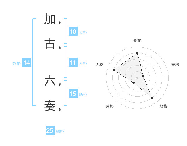 加古 六奏さんを姓名の画数から五運を鑑定