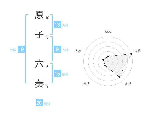 原子 六奏さんの天格は13画の5点!
