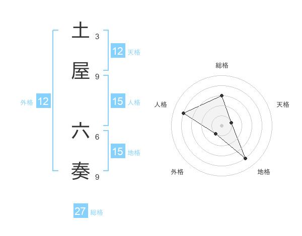 土屋 六奏さんを姓名の画数から五運を鑑定