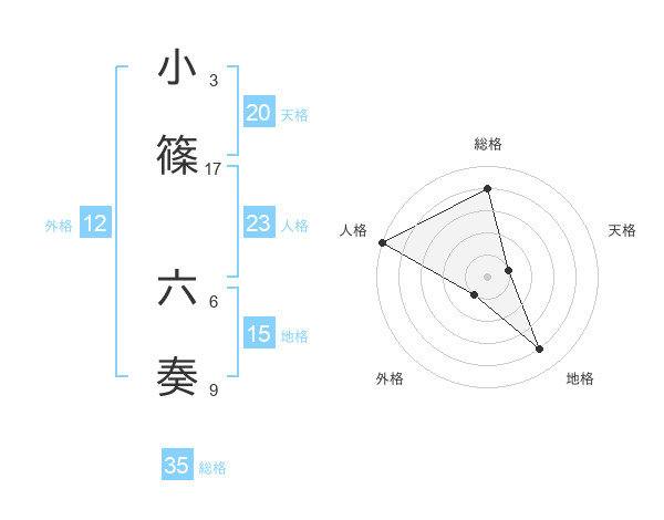 小篠 六奏さんを姓名の画数から五運を鑑定