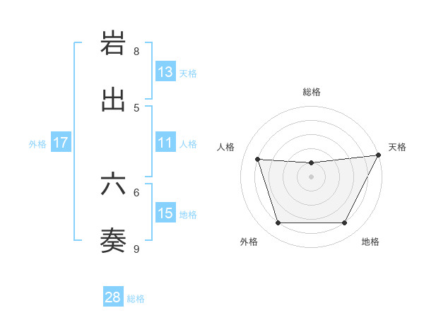 岩出 六奏さんの外格は17画の4点!