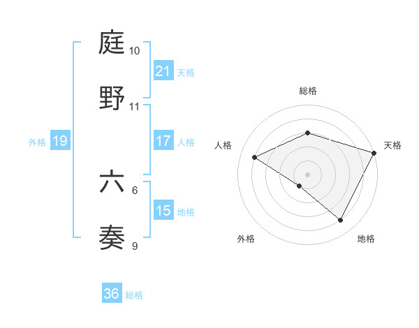 庭野 六奏さんを姓名の画数から五運を鑑定