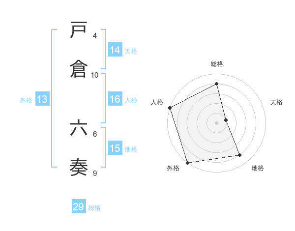 戸倉 六奏さんを姓名の画数から五運を鑑定