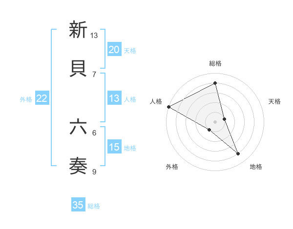 新貝 六奏さんの総格は35画の4点!