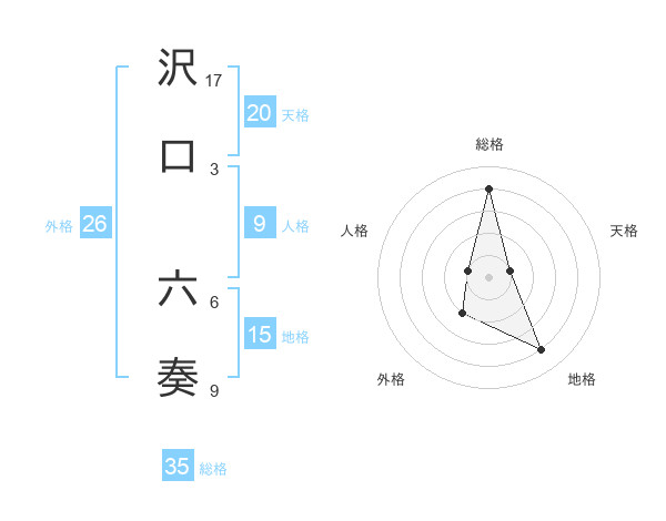 沢口 六奏さんの総格は35画の4点!
