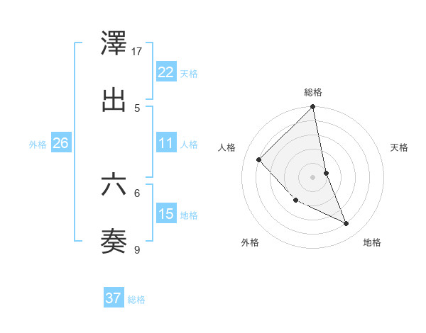 澤出 六奏さんを姓名の画数から五運を鑑定