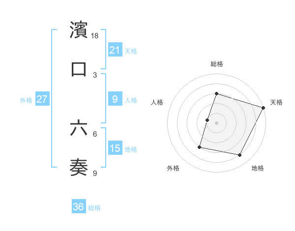 濱口 六奏さんを姓名の画数から五運を鑑定