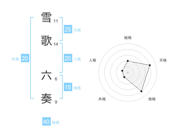 雪歌 六奏さんの天格は25画の4点!