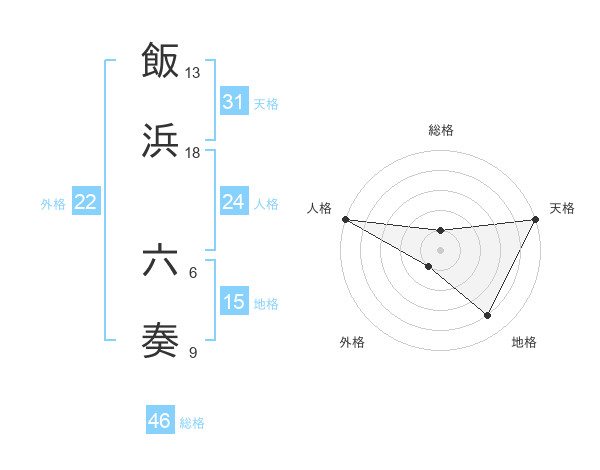 飯浜 六奏さんを姓名の画数から五運を鑑定