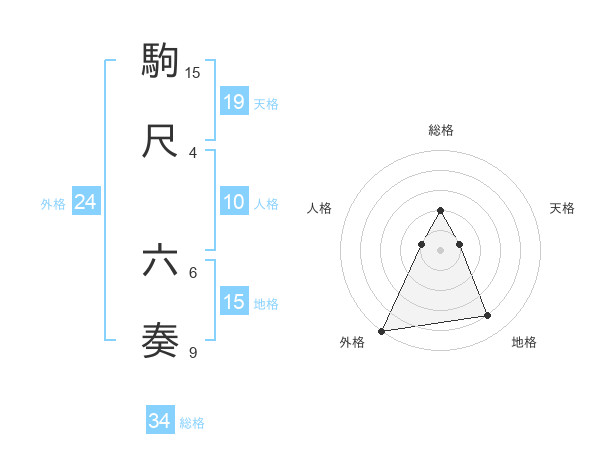 駒尺 六奏さんを姓名の画数から五運を鑑定