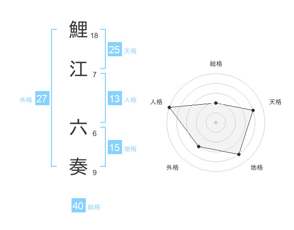 鯉江 六奏さんの総格は40画の2点!