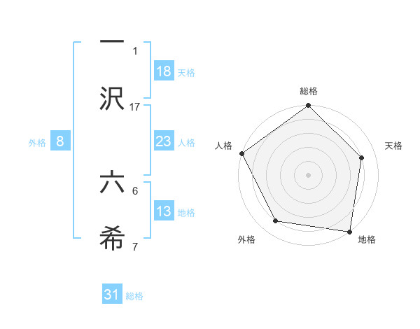 一沢 六希さんの人格は23画の5点!