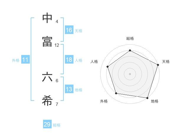 中富 六希さんの天格は16画の5点!