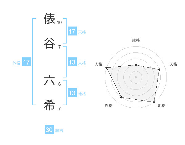 俵谷 六希さんの外格は17画の4点!