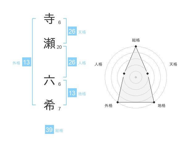 寺瀬 六希さんの外格は13画の5点!