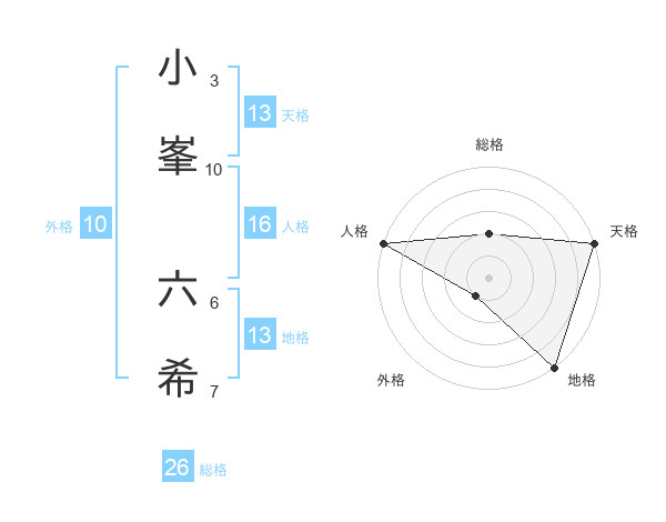 小峯 六希さんの天格は13画の5点!