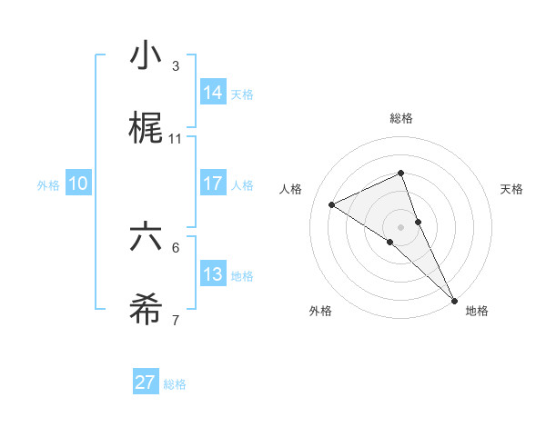 小梶 六希さんの天格は14画の1点!