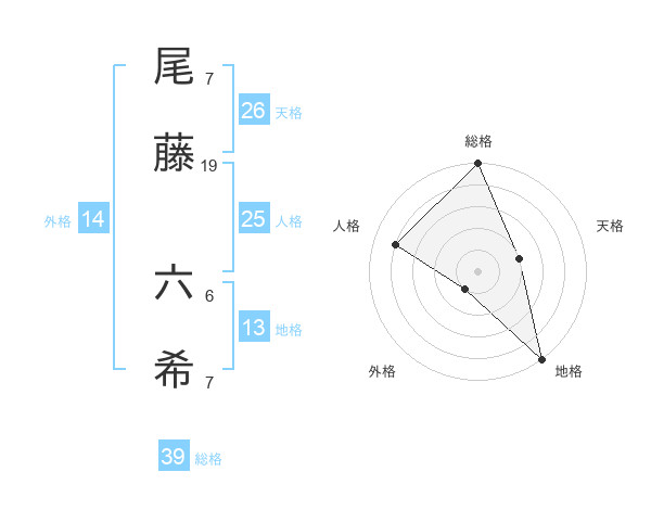 尾藤 六希さんを姓名の画数から五運を鑑定