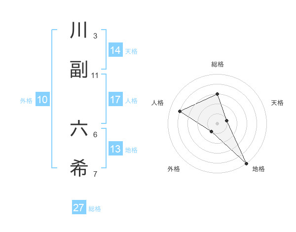 川副 六希さんの地格は13画の5点!
