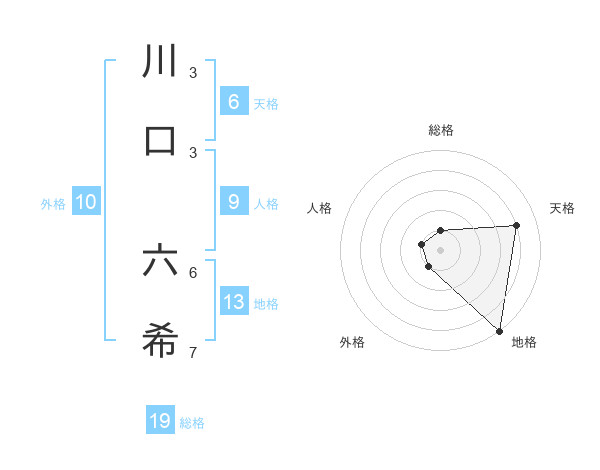 川口 六希さんの総格は19画の1点!