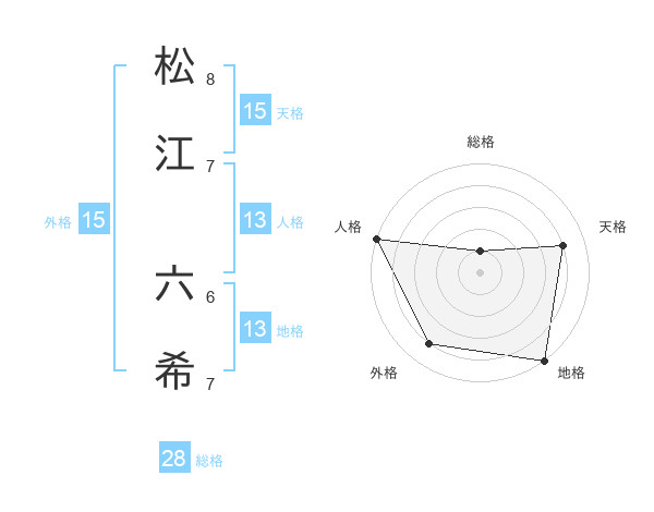 松江 六希さんの天格は15画の4点!