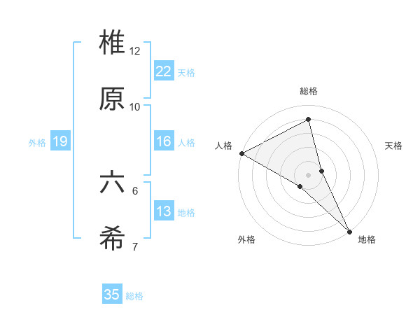 椎原 六希さんを姓名の画数から五運を鑑定