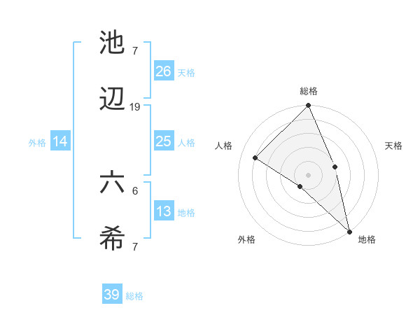 池辺 六希さんの総格は39画の5点!