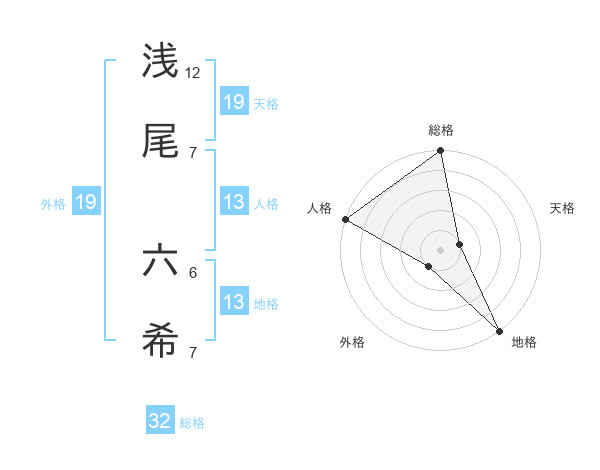 浅尾 六希さんを姓名の画数から五運を鑑定
