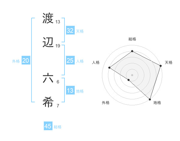 渡辺 六希さんの天格は32画の5点!