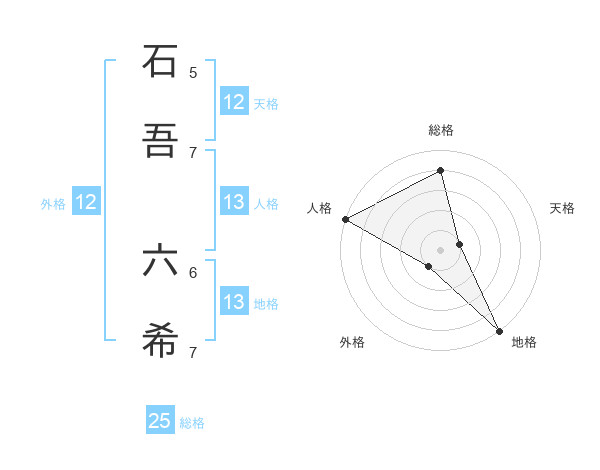 石吾 六希さんの外格は12画の1点!